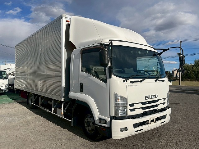 2RG-FRR90T2 H31 いすゞ フォワード アルミバン 跳ね上げ式パワーゲート PG ワンオーナー 6300 フルワイド 後輪エアサス フルキャブ ベッド付き 6速 MT マニュアル 210馬力 4t 8t 中型 ドライバン 箱車