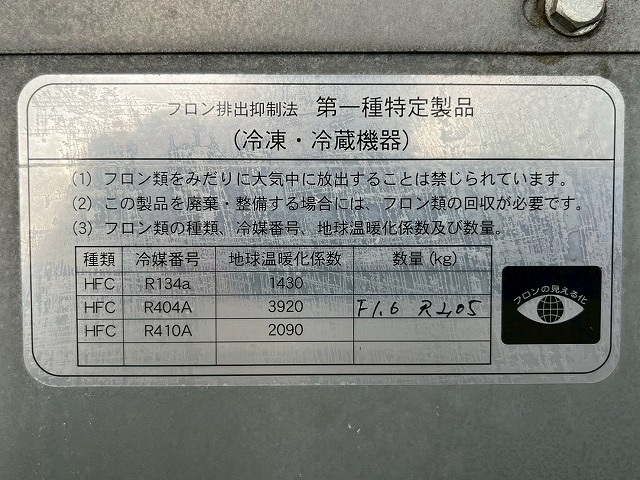 ■冷媒番号:R404A -30℃低温設定