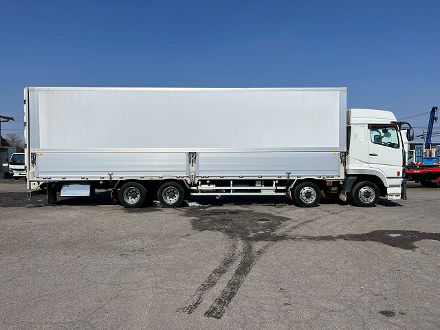 QPG-FS64VZ H28 スーパーグレート アルミウイング ハイルーフ 8×4 4軸低床2デフ 後輪エアサス 永久磁石式リターダ 13.7トン積載 380馬力 7速 MT マニュアル 10t 25t 大型 バン 箱車